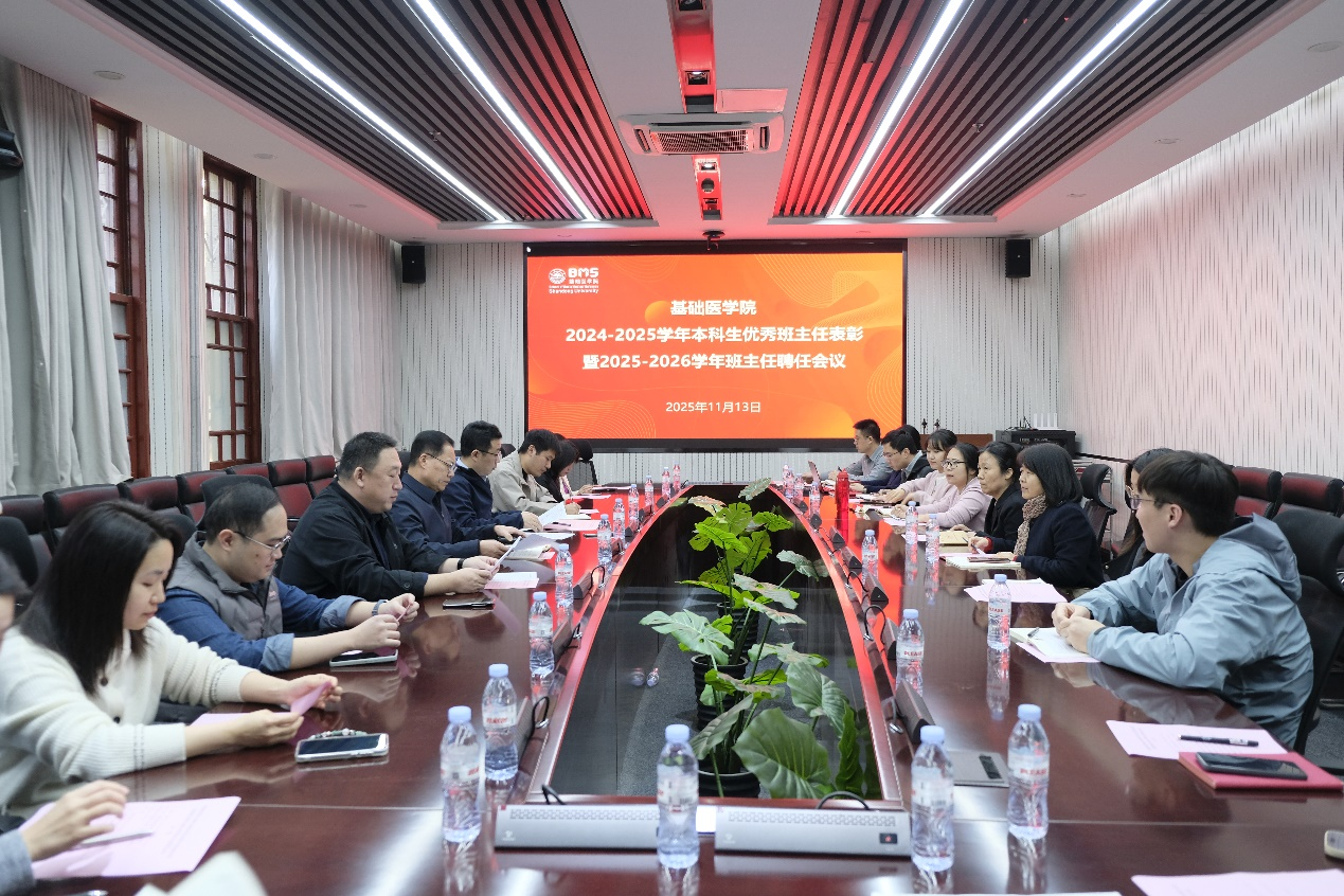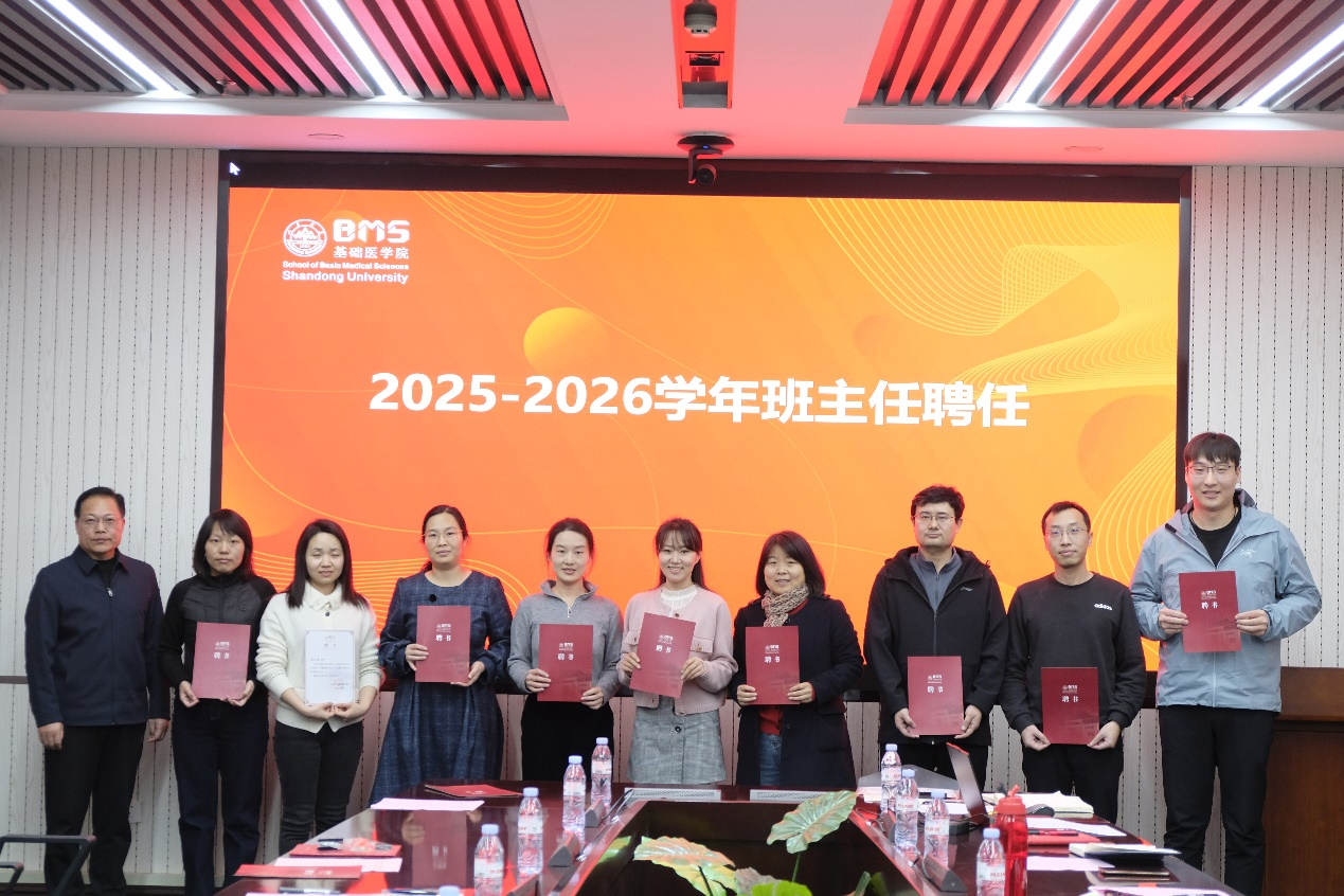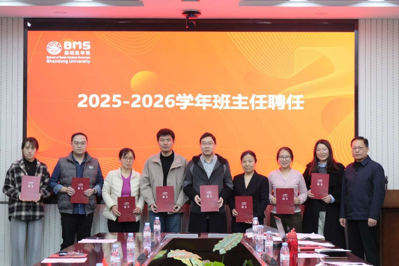 11月13日,基础医学院召开2025-2026学年本科生班主任聘任仪式。学院党委书记马宏峰、党委副书记姜昆、副院长刘尚明、院长助理李春阳出席会议,全体受聘教师、专职辅导员参加会议。会议由姜昆主持。