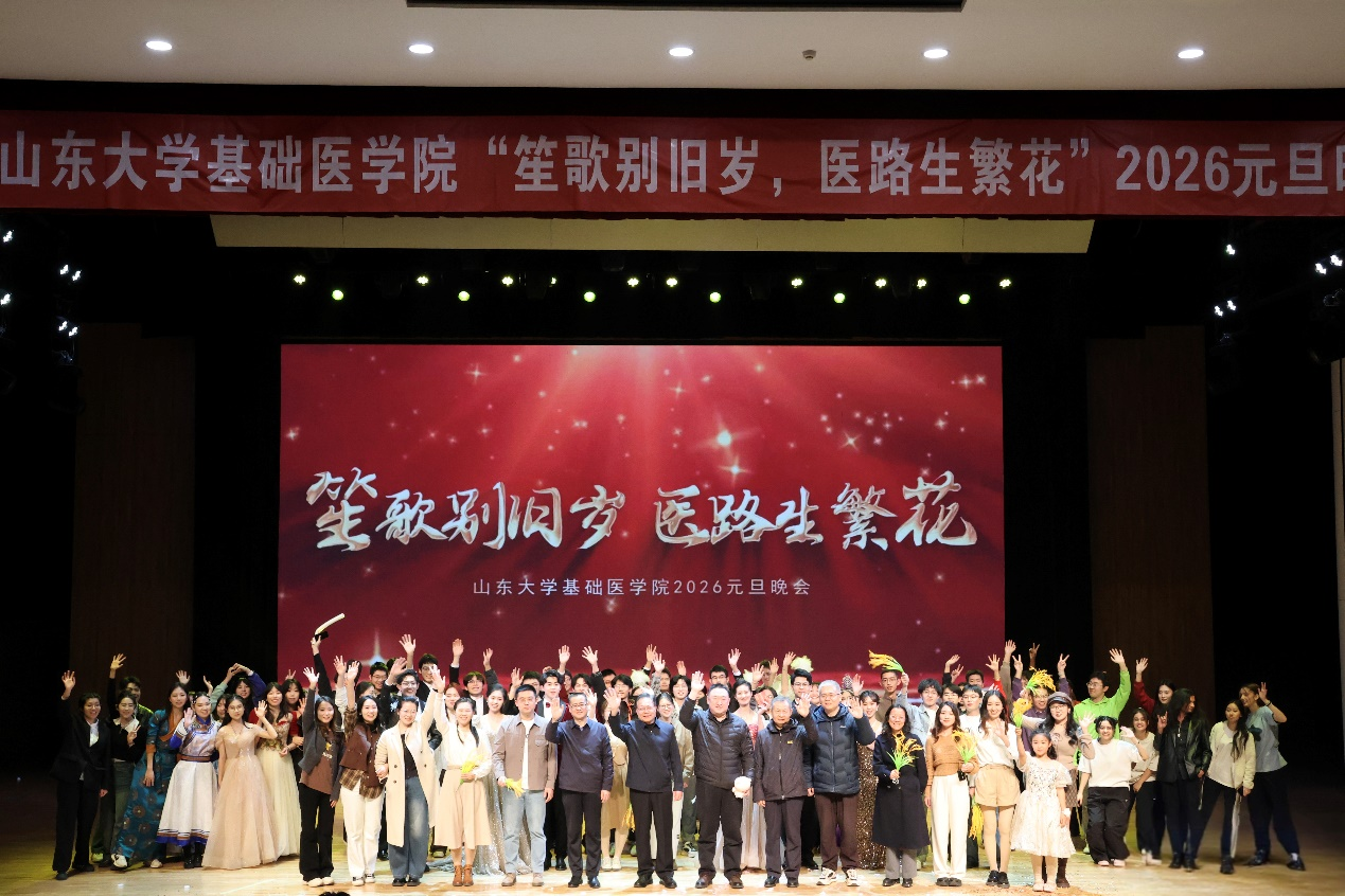 12月7日,基础医学院2026年元旦晚会在趵突泉校区举行。齐鲁医学院学生工作管理办公室副主任孙钰、基础医学院党委书记马宏峰,党委副书记张乃亭、姜昆,副处级组织员张爱国以及学院部分师生代表参加活动。