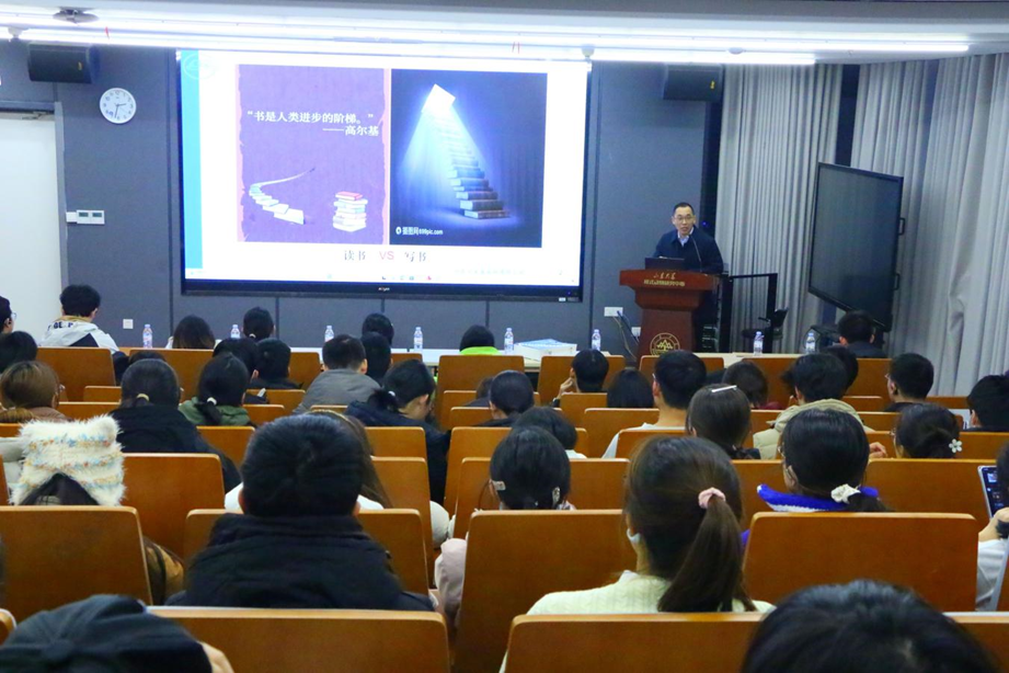 讲座中,鲁志强以“透过写书看如何读书”为主题,他结合自身8年医学院校本及研究生阶段学习经历和22年编辑出版工作经验,从“为什么写一本书”“如何写一本书”“如何读一本书”三个维度,系统阐释医学生高效阅读、夯实学业基础的关键路径。讲座内容紧扣医学生学业发展需求,逻辑严谨,现场反响热烈。